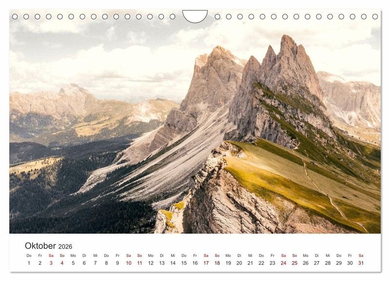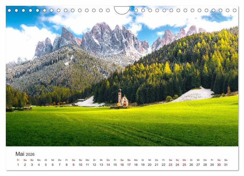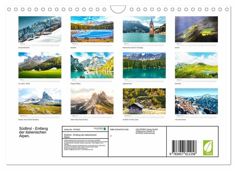 Bestaunen Sie 12 eindrucksvolle Aufnahmen aus Südtirol, Italien. Tauchen Sie mit diesen Aufnahmen in eine wundervolle Bilderkulisse ein. Holen Sie sich das Südtirol-Feeling direkt nach Hause. Lassen Sie sich jedes Monat von einem weiteren unfassbaren Motiv überraschen.