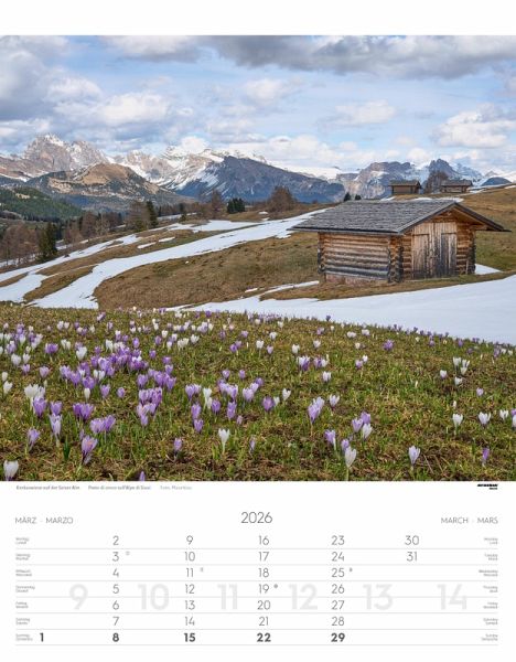 Südtirol von seiner schönsten Seite im Wandel der Jahreszeiten.- Titelbild- 12 Monatsblätter- Übersichtsblatt- Spiralbindung- einzeln eingeschweißt- viersprachiges Kalendarium- copertina- 12 fogli mensili- foglio riassuntivo- rilegatura a spirale- cellofanatura singola- lunario a 4 lingue