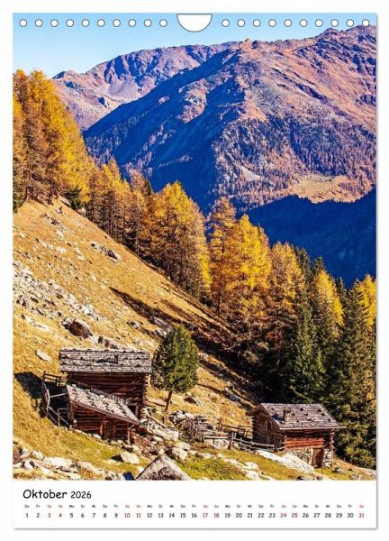 Oktober: Almhütten am Steilhang des Martelltal