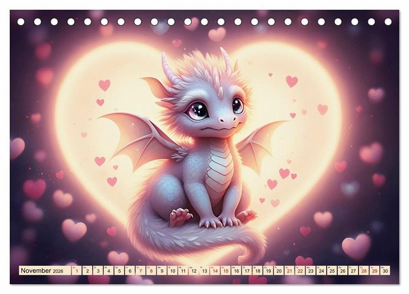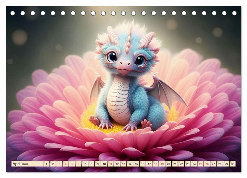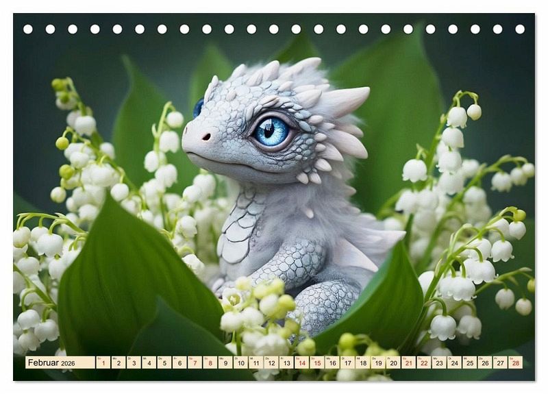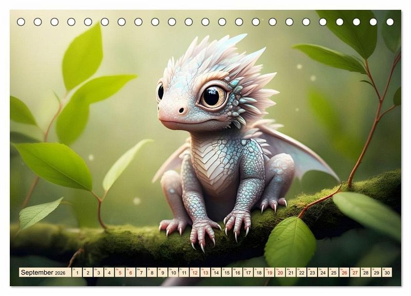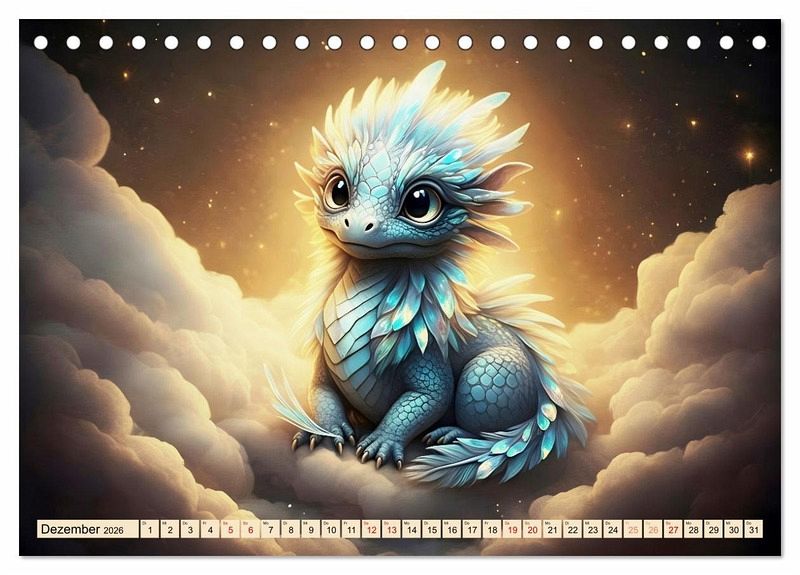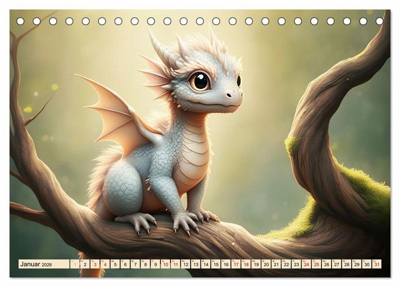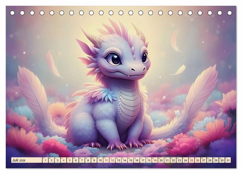 Erleben Sie die zauberhafte Welt der Natur mit unserem außergewöhnlichen KI erstellten Kalender, der entzückende Babydrachen in verschiedensten Umgebungen zeigt. Jeder Monat enthüllt ein liebevoll gestaltetes Bild eines kleinen Drachen, eingebettet in malerische Naturelemente.