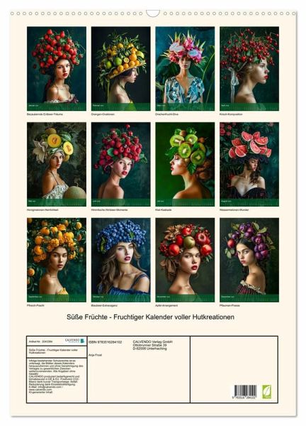 Entdecken Sie mit unserem "Süße Früchte - Fruchtiger Kalender voller Hutkreationen" eine köstliche Welt der Mode und Kreativität. Jeder Monat präsentiert faszinierende KI-generierte Damen mit kunstvoll gestalteten Früchtehüten, die nicht nur stilvoll, sondern auch einzigartig sind. Von Erdbeeren bis zu Pflaumen bietet dieser Kalender eine fröhliche Reise durch die Vielfalt fruchtiger Eleganz. Die lebendigen Farben und die detailreichen Kreationen machen diesen Kalender zu einem charmanten Begleiter für das ganze Jahr. Ideal als Geschenk für Obst- und Modeenthusiasten. Verleihen Sie Ihrem Raum einen frischen Hauch von Früchtefreude.