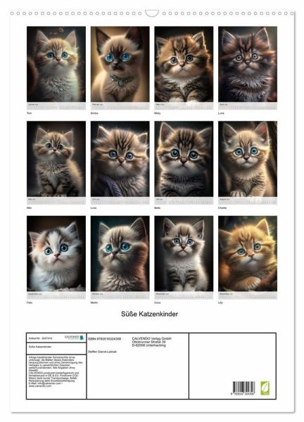 QUALITÄT - Hochwertiger Fotokalender mit 12 wunderschönen Motiven auf lichtbeständigem Bilderdruckpapier, robuste Spiralbindung mit Aufhängebügel.NACHHALTIG - deutliche Abfallreduzierung durch bedarfsgerechte Einzelstückfertigung, umweltfreundliches FSC-zertifiziertes Papier, Produktion in Deutschland, klimabewusste Logistik.PERFEKTES GESCHENK - Kalender für Freunde und Familie, für Kinder und Erwachsene, jung und alt, zu Weihnachten, Geburtstag oder zwischendurch.VIELFALT - Bildkalender in verschiedenen Formaten, z.B. DIN A5, DIN A4, DIN A3 sowie DIN A2. Ob Naturmotiv, Gemälde oder Fotos, ideal für ein persönliches Wohlfühlambiente.Katzenbabys sind junge Katzen oder auch Kitten, die neugierig und verspielt sind. von Autor(in): Steffen Gierok ; Magik Artist Design