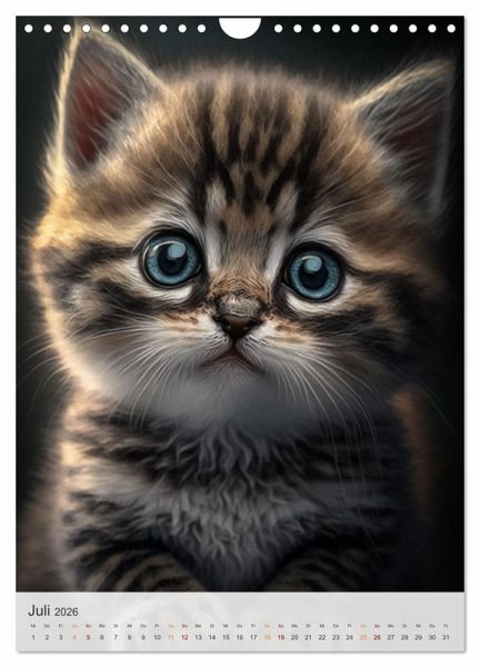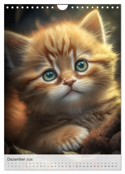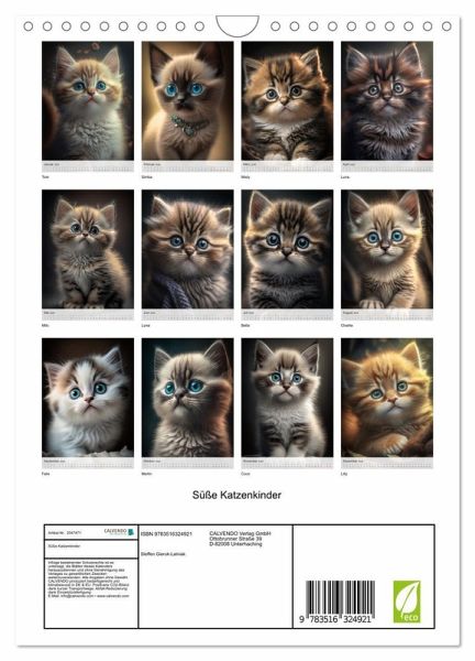QUALITÄT - Hochwertiger Fotokalender mit 12 wunderschönen Motiven auf lichtbeständigem Bilderdruckpapier, robuste Spiralbindung mit Aufhängebügel.NACHHALTIG - deutliche Abfallreduzierung durch bedarfsgerechte Einzelstückfertigung, umweltfreundliches FSC-zertifiziertes Papier, Produktion in Deutschland, klimabewusste Logistik.PERFEKTES GESCHENK - Kalender für Freunde und Familie, für Kinder und Erwachsene, jung und alt, zu Weihnachten, Geburtstag oder zwischendurch.VIELFALT - Bildkalender in verschiedenen Formaten, z.B. DIN A5, DIN A4, DIN A3 sowie DIN A2. Ob Naturmotiv, Gemälde oder Fotos, ideal für ein persönliches Wohlfühlambiente.Katzenbabys sind junge Katzen oder auch Kitten, die neugierig und verspielt sind. von Autor(in): Steffen Gierok ; Magik Artist Design