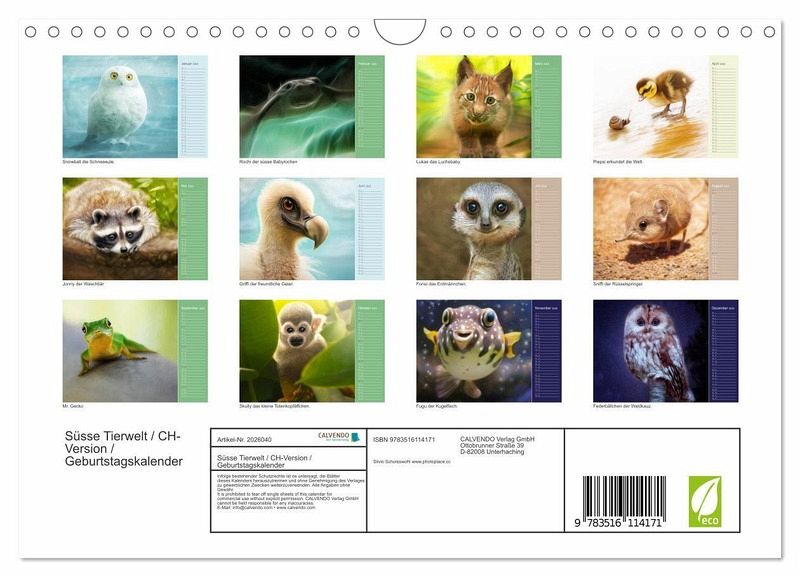 Die besonders niedliche Darstellung der Tiere macht diesen Kalender zu einem Highlight in jedem Kinderzimmer.