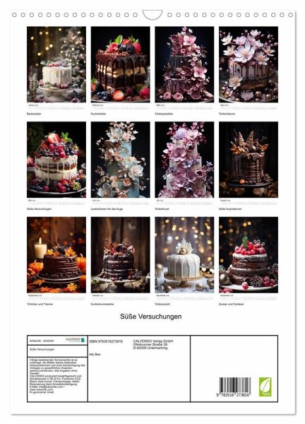 Entdecken Sie die süße Seite des Jahres mit diesem faszinierenden KI-Tortenkalender! Jeder Monat präsentiert eine atemberaubende und kunstvoll gestaltete Torte, die nicht nur das Auge erfreut, sondern auch die Fantasie anregt. Von kunstvollen Hochzeitstorten bis hin zu verlockenden Geburtstagskreationen - dieser Kalender ist ein wahres Fest für alle Sinne und ein Muss für Hobbybäcker und Kuchenliebhaber. Tauchen Sie ein in eine Welt voller Zuckerträume und lassen Sie sich von den exquisiten Torten inspirieren. Ob als Geschenk oder für den eigenen Gebrauch, unser Tortenkalender ist die perfekte Wahl für alle, die die Kunst des Backens und die Freude am Genuss lieben. Sichern Sie sich noch heute dieses köstliche Stückchen Glück!