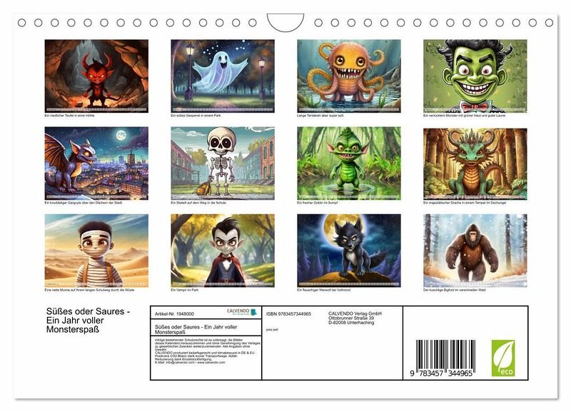 QUALITÄT - Hochwertiger Fotokalender mit 12 wunderschönen Motiven auf lichtbeständigem Bilderdruckpapier, robuste Spiralbindung mit Aufhängebügel.NACHHALTIG - deutliche Abfallreduzierung durch bedarfsgerechte Einzelstückfertigung, umweltfreundliches FSC-zertifiziertes Papier, Produktion in Deutschland, klimabewusste Logistik.PERFEKTES GESCHENK - Kalender für Freunde und Familie, für Kinder und Erwachsene, jung und alt, zu Weihnachten, Geburtstag oder zwischendurch.VIELFALT - Bildkalender in verschiedenen Formaten, z.B. DIN A5, DIN A4, DIN A3 sowie DIN A2. Ob Naturmotiv, Gemälde oder Fotos, ideal für ein persönliches Wohlfühlambiente.Tauchen Sie ein in eine Welt voller entzückender kleiner Monster, die Ihnen jeden Tag ein Lächeln aufs Gesicht zaubern werden. von Autor(in): Fabian Junge