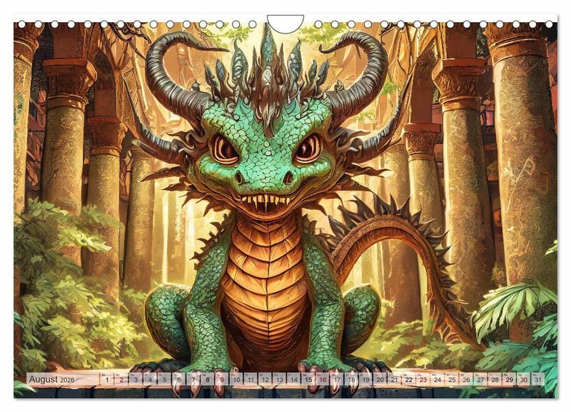 August: Ein majestätischer Drache in einem Tempel im Dschungel