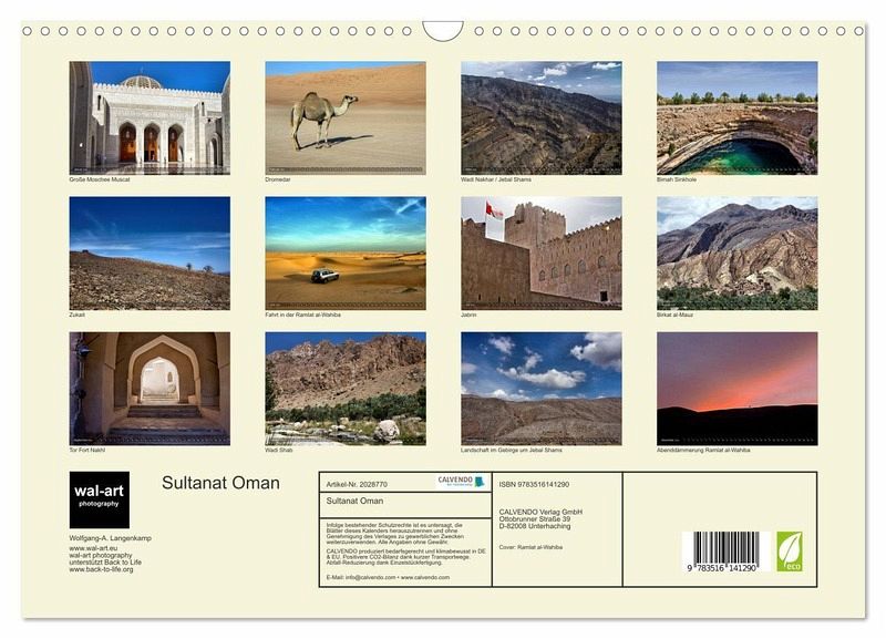 QUALITÄT - Hochwertiger Fotokalender mit 12 wunderschönen Motiven auf lichtbeständigem Bilderdruckpapier, robuste Spiralbindung mit Aufhängebügel.NACHHALTIG - deutliche Abfallreduzierung durch bedarfsgerechte Einzelstückfertigung, umweltfreundliches FSC-zertifiziertes Papier, Produktion in Deutschland, klimabewusste Logistik.PERFEKTES GESCHENK - Kalender für Freunde und Familie, für Kinder und Erwachsene, jung und alt, zu Weihnachten, Geburtstag oder zwischendurch.VIELFALT - Bildkalender in verschiedenen Formaten, z.B. DIN A5, DIN A4, DIN A3 sowie DIN A2. Ob Naturmotiv, Gemälde oder Fotos, ideal für ein persönliches Wohlfühlambiente.Reisefotografie: Landschaften und Bauten im Oman von Autor(in): Wolfgang A. Langenkamp