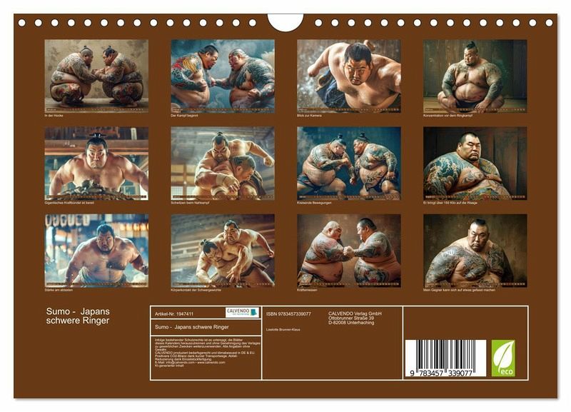 QUALITÄT - Hochwertiger Fotokalender mit 12 wunderschönen Motiven auf lichtbeständigem Bilderdruckpapier, robuste Spiralbindung mit Aufhängebügel.NACHHALTIG - deutliche Abfallreduzierung durch bedarfsgerechte Einzelstückfertigung, umweltfreundliches FSC-zertifiziertes Papier, Produktion in Deutschland, klimabewusste Logistik.PERFEKTES GESCHENK - Kalender für Freunde und Familie, für Kinder und Erwachsene, jung und alt, zu Weihnachten, Geburtstag oder zwischendurch.VIELFALT - Bildkalender in verschiedenen Formaten, z.B. DIN A5, DIN A4, DIN A3 sowie DIN A2. Ob Naturmotiv, Gemälde oder Fotos, ideal für ein persönliches Wohlfühlambiente.Japanischer Nationalsport Sumo von Autor(in): Liselotte Brunner-Klaus