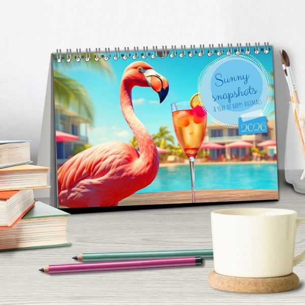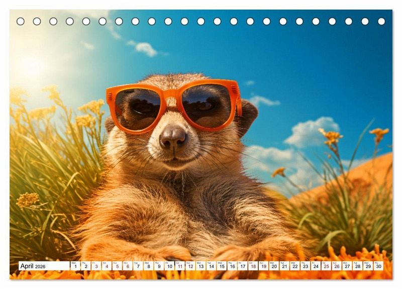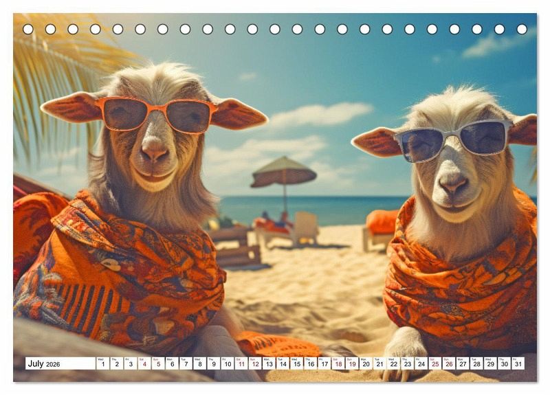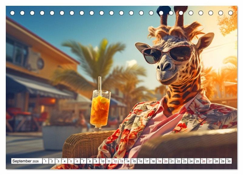 For you, the whole year could be summer and in addition you love animals. Then this wall calendar is just right for you. Every month you'll find a magical AI generated photo of an animal having fun in the warm season. Whether it's a polar bear, hamster, goat or alpaca - you'll find them all here. See them splashing in the water, frolicking in the sand or lolling in the sun and be infected by their good mood. This wall calendar makes a great gift for yourself or your loved ones. Order it now and ensure yourself a year full of sunny snapshots with good-humored animals.