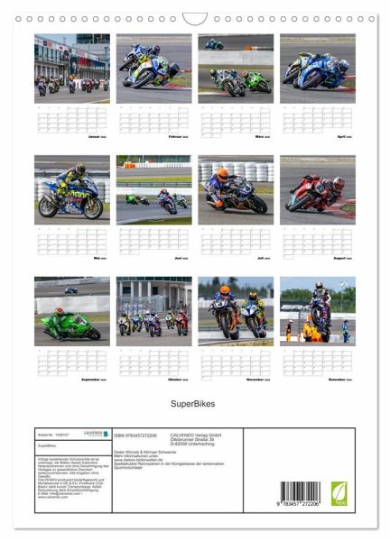 QUALITÄT - Hochwertiger Fotokalender mit 12 wunderschönen Motiven auf lichtbeständigem Bilderdruckpapier, robuste Spiralbindung mit Aufhängebügel.NACHHALTIG - deutliche Abfallreduzierung durch bedarfsgerechte Einzelstückfertigung, umweltfreundliches FSC-zertifiziertes Papier, Produktion in Deutschland, klimabewusste Logistik.PERFEKTES GESCHENK - Kalender für Freunde und Familie, für Kinder und Erwachsene, jung und alt, zu Weihnachten, Geburtstag oder zwischendurch.VIELFALT - Bildkalender in verschiedenen Formaten, z.B. DIN A5, DIN A4, DIN A3 sowie DIN A2. Ob Naturmotiv, Gemälde oder Fotos, ideal für ein persönliches Wohlfühlambiente.Spektakuläre Rennszenen in der Königsklasse der seriennahen Sportmotorräder von Autor(in): Dieter Wilczek