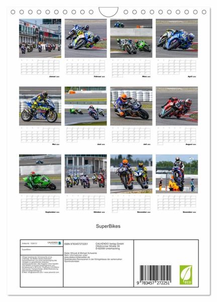 QUALITÄT - Hochwertiger Fotokalender mit 12 wunderschönen Motiven auf lichtbeständigem Bilderdruckpapier, robuste Spiralbindung mit Aufhängebügel.NACHHALTIG - deutliche Abfallreduzierung durch bedarfsgerechte Einzelstückfertigung, umweltfreundliches FSC-zertifiziertes Papier, Produktion in Deutschland, klimabewusste Logistik.PERFEKTES GESCHENK - Kalender für Freunde und Familie, für Kinder und Erwachsene, jung und alt, zu Weihnachten, Geburtstag oder zwischendurch.VIELFALT - Bildkalender in verschiedenen Formaten, z.B. DIN A5, DIN A4, DIN A3 sowie DIN A2. Ob Naturmotiv, Gemälde oder Fotos, ideal für ein persönliches Wohlfühlambiente.Spektakuläre Rennszenen in der Königsklasse der seriennahen Sportmotorräder von Autor(in): Dieter Wilczek