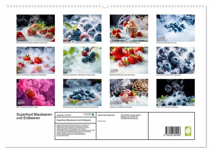 PREMIUM-LINIE - Brillanter Fotokalender mit 12 wunderschönen Motiven, Kunstdruck in Hochglanz in Museumsqualität.QUALITÄT - edle Materialien, stabile Rückwand mit 2 innovativen Einstecktaschen für eine optimale Präsentation an der Wand.NACHHALTIG - deutliche Abfallreduzierung durch bedarfsgerechte Einzelstückfertigung, umweltfreundliches FSC-zertifiziertes Papier, Produktion in Deutschland, klimabewusste Logistik.PERFEKTES GESCHENK - Kalender für Freunde und Familie, für Kinder und Erwachsene, jung und alt, zu Weihnachten, Geburtstag oder zwischendurch.Beerenstark im Doppelpack, für Körper und Seele. von Autor(in): Torsten Irmer