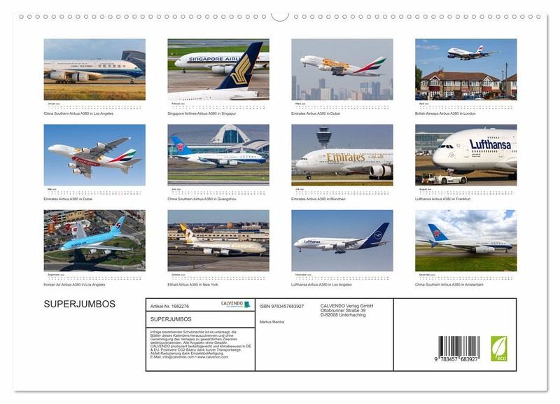 QUALITÄT - Hochwertiger Fotokalender mit 12 wunderschönen Motiven auf lichtbeständigem Bilderdruckpapier, robuste Spiralbindung mit Aufhängebügel.NACHHALTIG - deutliche Abfallreduzierung durch bedarfsgerechte Einzelstückfertigung, umweltfreundliches FSC-zertifiziertes Papier, Produktion in Deutschland, klimabewusste Logistik.PERFEKTES GESCHENK - Kalender für Freunde und Familie, für Kinder und Erwachsene, jung und alt, zu Weihnachten, Geburtstag oder zwischendurch.VIELFALT - Bildkalender in verschiedenen Formaten, z.B. DIN A5, DIN A4, DIN A3 sowie DIN A2. Ob Naturmotiv, Gemälde oder Fotos, ideal für ein persönliches Wohlfühlambiente.Die schönsten Fotos vom Airbus A380 von Autor(in): Markus Mainka