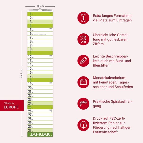 - Monat für Monat alles im Blick: Der neue Supermemo Terminplaner 2026 ist da!- Der praktische Streifenkalender mit dem Fokus auf das Wesentliche: Mit Farbmarkierungen für Wochenenden und Feiertage und Datumsschieber für mehr Orientierung- Einspaltiger Langplaner für Homeoffice und Büro: Kalender im Hochformat 17x85 cm - Übersichtlicher geht's nicht: Wandkalender zum Eintragen mit zahlreichen Extras wie Schulferien und Jahresüberblick- Die perfekte Gedächtnisstütze: Terminplaner von Heye aus dem Athesia Kalenderverlag