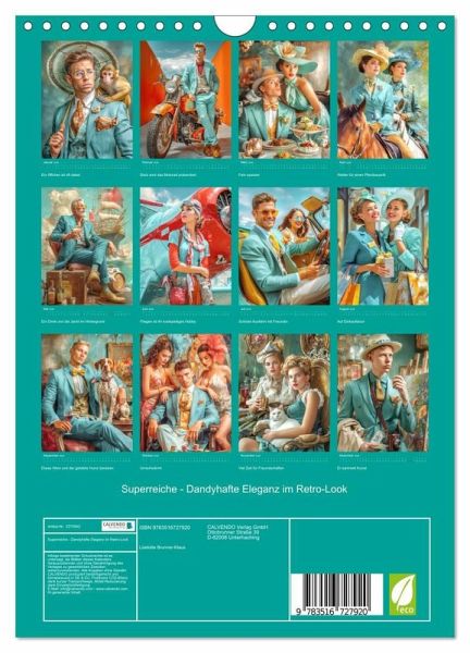 QUALITÄT - Hochwertiger Fotokalender mit 12 wunderschönen Motiven auf lichtbeständigem Bilderdruckpapier, robuste Spiralbindung mit Aufhängebügel.NACHHALTIG - deutliche Abfallreduzierung durch bedarfsgerechte Einzelstückfertigung, umweltfreundliches FSC-zertifiziertes Papier, Produktion in Deutschland, klimabewusste Logistik.PERFEKTES GESCHENK - Kalender für Freunde und Familie, für Kinder und Erwachsene, jung und alt, zu Weihnachten, Geburtstag oder zwischendurch.VIELFALT - Bildkalender in verschiedenen Formaten, z.B. DIN A5, DIN A4, DIN A3 sowie DIN A2. Ob Naturmotiv, Gemälde oder Fotos, ideal für ein persönliches Wohlfühlambiente.Wohlhabende Zeitgenossen im Dandystil von Autor(in): Liselotte Brunner-Klaus