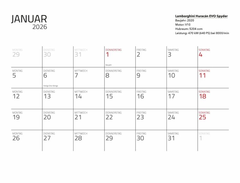 Preisgünstiger Kalender: Ganz viel PS zum extra kleinen Preis! Einzigartige Bildkompositionen von Profifotograf Constantin Stein zeigen perfekt inszenierte Supercars renommierter Hersteller wie Ferrari, Bugatti, Porsche, Audi, McLaren oder Lamborghini. Monat für Monat ein wunderbarer Streifzug durch die internationale Sportwagengeschichte. Ausgeklappt bietet der Kalender viel Platz zum Eintragen von Terminen. Hochwertige Ausstattung: - 14 Seiten Kunstdruckpapier - Cover mit Glanzlack veredelt - extra stabile Rückwand - silberne Spiralbindung - nachhaltig produziert.