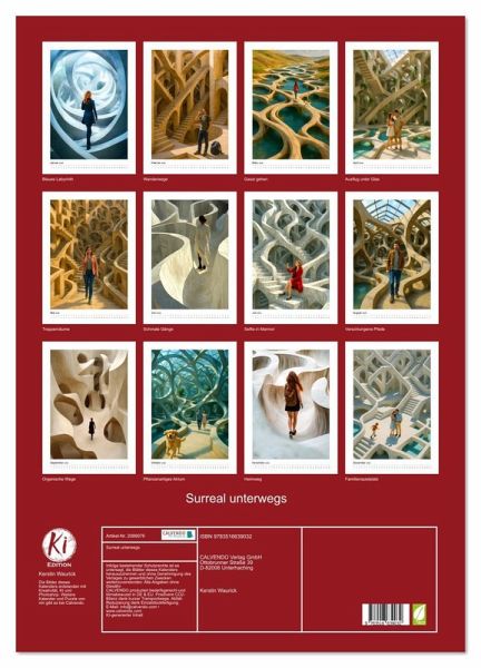 QUALITÄT - Hochwertiger Fotokalender mit 12 wunderschönen Motiven auf lichtbeständigem Bilderdruckpapier, robuste Spiralbindung mit Aufhängebügel.NACHHALTIG - deutliche Abfallreduzierung durch bedarfsgerechte Einzelstückfertigung, umweltfreundliches FSC-zertifiziertes Papier, Produktion in Deutschland, klimabewusste Logistik.PERFEKTES GESCHENK - Kalender für Freunde und Familie, für Kinder und Erwachsene, jung und alt, zu Weihnachten, Geburtstag oder zwischendurch.VIELFALT - Bildkalender in verschiedenen Formaten, z.B. DIN A5, DIN A4, DIN A3 sowie DIN A2. Ob Naturmotiv, Gemälde oder Fotos, ideal für ein persönliches Wohlfühlambiente.Surreale Traumwelten, die zum Verirren und Staunen einladen - unmögliche Perspektiven vollerMagie von Autor(in): Kerstin Waurick