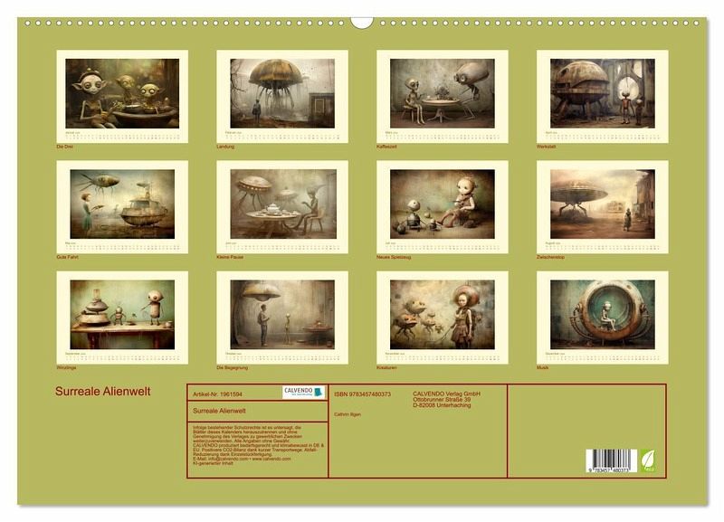 QUALITÄT - Hochwertiger Fotokalender mit 12 wunderschönen Motiven auf lichtbeständigem Bilderdruckpapier, robuste Spiralbindung mit Aufhängebügel.NACHHALTIG - deutliche Abfallreduzierung durch bedarfsgerechte Einzelstückfertigung, umweltfreundliches FSC-zertifiziertes Papier, Produktion in Deutschland, klimabewusste Logistik.PERFEKTES GESCHENK - Kalender für Freunde und Familie, für Kinder und Erwachsene, jung und alt, zu Weihnachten, Geburtstag oder zwischendurch.VIELFALT - Bildkalender in verschiedenen Formaten, z.B. DIN A5, DIN A4, DIN A3 sowie DIN A2. Ob Naturmotiv, Gemälde oder Fotos, ideal für ein persönliches Wohlfühlambiente.Coole skurrile Aliens - KI generiert von Autor(in): Catill