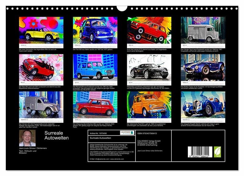 QUALITÄT - Hochwertiger Fotokalender mit 12 wunderschönen Motiven auf lichtbeständigem Bilderdruckpapier, robuste Spiralbindung mit Aufhängebügel.NACHHALTIG - deutliche Abfallreduzierung durch bedarfsgerechte Einzelstückfertigung, umweltfreundliches FSC-zertifiziertes Papier, Produktion in Deutschland, klimabewusste Logistik.PERFEKTES GESCHENK - Kalender für Freunde und Familie, für Kinder und Erwachsene, jung und alt, zu Weihnachten, Geburtstag oder zwischendurch.VIELFALT - Bildkalender in verschiedenen Formaten, z.B. DIN A5, DIN A4, DIN A3 sowie DIN A2. Ob Naturmotiv, Gemälde oder Fotos, ideal für ein persönliches Wohlfühlambiente.Autos als Kunstwerke - ganz ohne Alltagstrott von Autor(in): DeVerviers