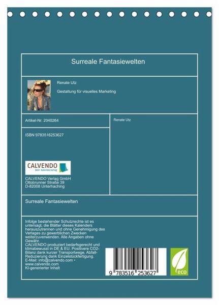QUALITÄT - Hochwertiger Fotokalender mit 12 wunderschönen Motiven auf lichtbeständigem Bilderdruckpapier, robuste Spiralbindung.NACHHALTIG - deutliche Abfallreduzierung durch bedarfsgerechte Einzelstückfertigung, umweltfreundliches FSC-zertifiziertes Papier, Produktion in Deutschland, klimabewusste Logistik.PERFEKTES GESCHENK - Kalender für Freunde und Familie, für Kinder und Erwachsene, jung und alt, zu Weihnachten, Geburtstag oder zwischendurch.VIELFALT - Bildkalender in verschiedenen Formaten, z.B. DIN A5, DIN A4, DIN A3 sowie DIN A2. Ob Naturmotiv, Gemälde oder Fotos, ideal für ein persönliches Wohlfühlambiente.Fantastische Bilder aus Traum und Fantasie jenseits der Grenzen des Vorstellbaren von Autor(in): Renate Bleicher