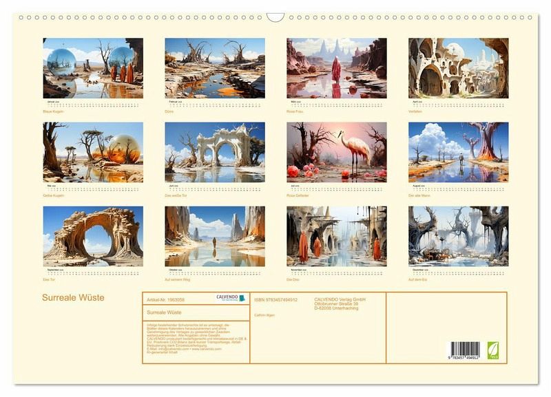 QUALITÄT - Hochwertiger Fotokalender mit 12 wunderschönen Motiven auf lichtbeständigem Bilderdruckpapier, robuste Spiralbindung mit Aufhängebügel.NACHHALTIG - deutliche Abfallreduzierung durch bedarfsgerechte Einzelstückfertigung, umweltfreundliches FSC-zertifiziertes Papier, Produktion in Deutschland, klimabewusste Logistik.PERFEKTES GESCHENK - Kalender für Freunde und Familie, für Kinder und Erwachsene, jung und alt, zu Weihnachten, Geburtstag oder zwischendurch.VIELFALT - Bildkalender in verschiedenen Formaten, z.B. DIN A5, DIN A4, DIN A3 sowie DIN A2. Ob Naturmotiv, Gemälde oder Fotos, ideal für ein persönliches Wohlfühlambiente.Surreale fantastische malerische Wüstenlandschaften - KI generiert von Autor(in): Catill