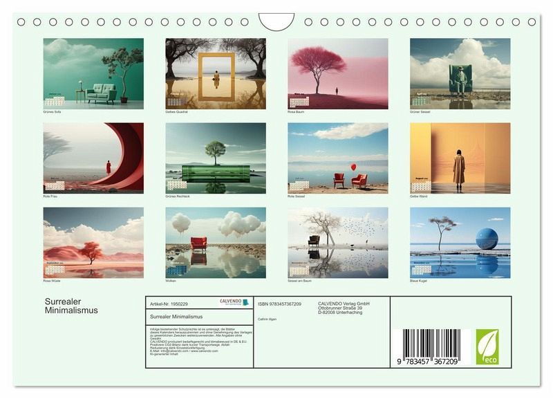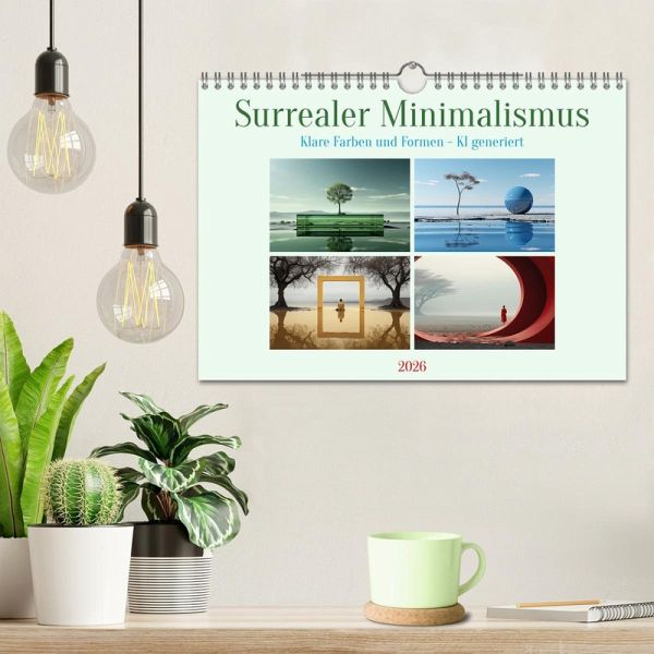 Erleben Sie die Schönheit der surrealen minimalistischen Kunst mit dem neuen einzigartigen Kalender. Jedes Bild wurde von einer künstlichen Intelligenz generiert und zeigt eine Welt voller minimalistischer Formen und klarer Farben. Lassen Sie sich von der Schönheit dieser faszinierenden speziellen Kunst verzaubern und genießen Sie jeden Monat ein neues Kunstwerk.