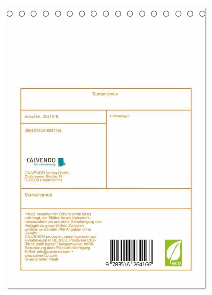 Die im Kalender von einer Künstlichen Intelligenz generierten Motive wurde durch diverse Fotobearbeitungsprogramme optimiert und verleihen dem Kalender ein durchgehend harmonisches Farbbild. Als Wanddekoration zu Hause oder im Büro, es wird ihren Raum mit Intensität und Fantasie bereichern.