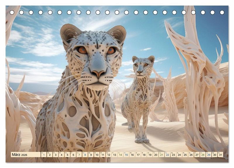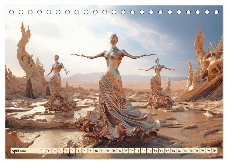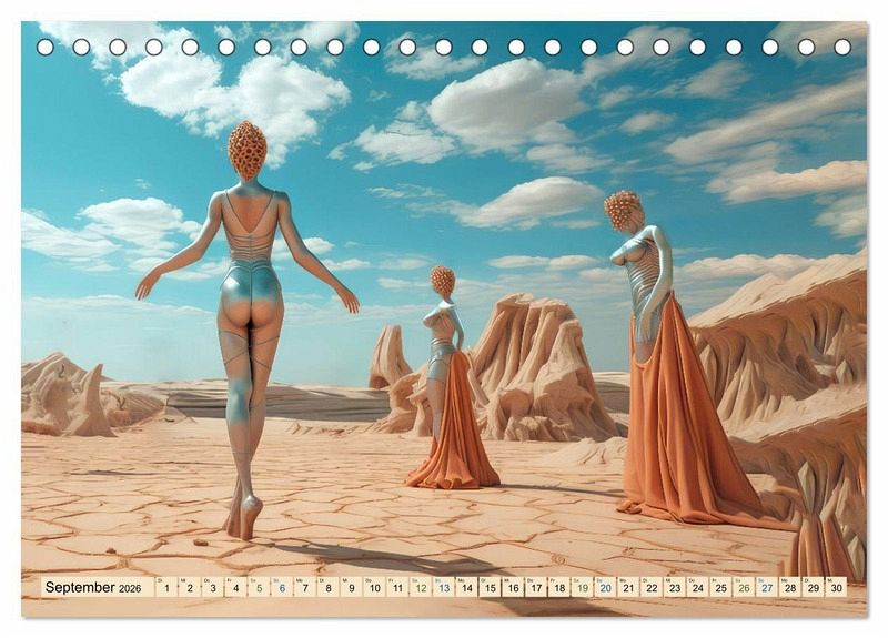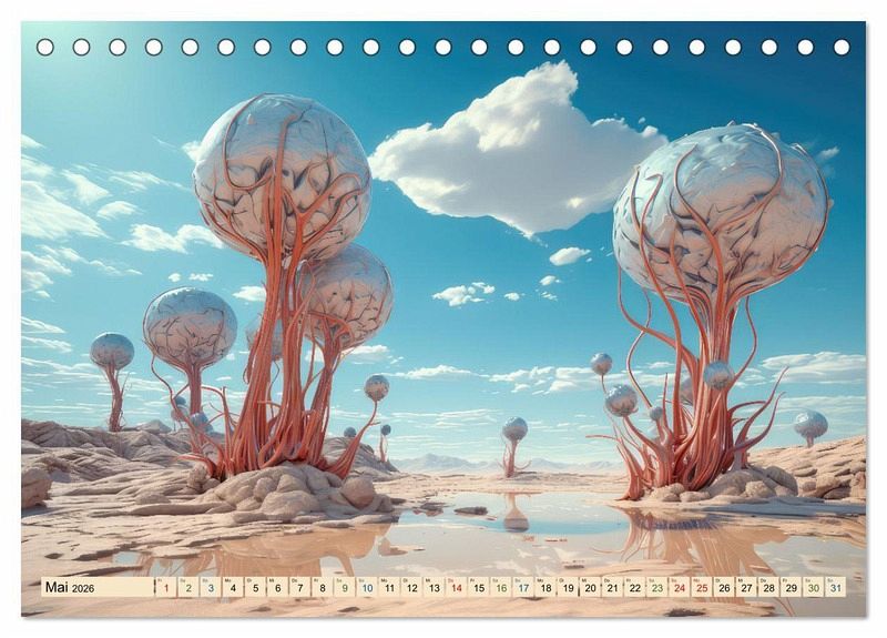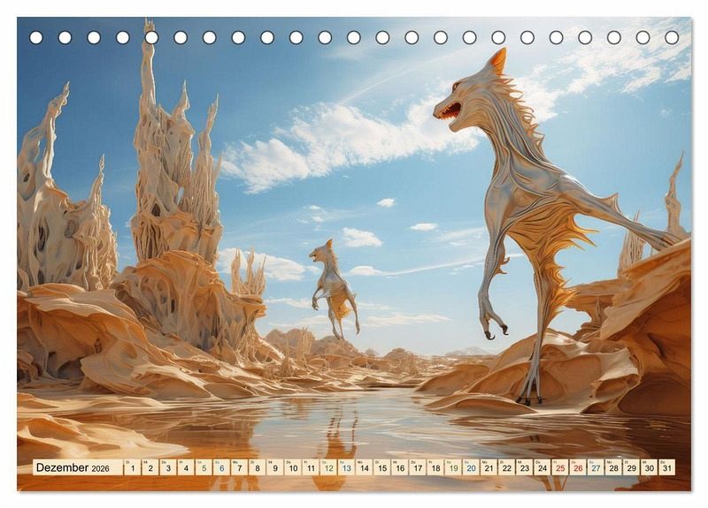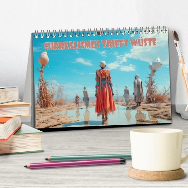 Entdecken Sie eine Welt jenseits Ihrer Vorstellungskraft. Der faszinierende Kalender mit dem Titel Surrealismus trifft Wüste lädt Sie ein zu einer Reise in surreale Landschaften und verzaubert Sie mit einmaligen Bildern, welche mit Hilfe der KI erstellt wurden.