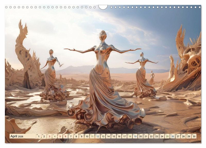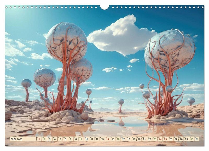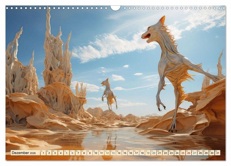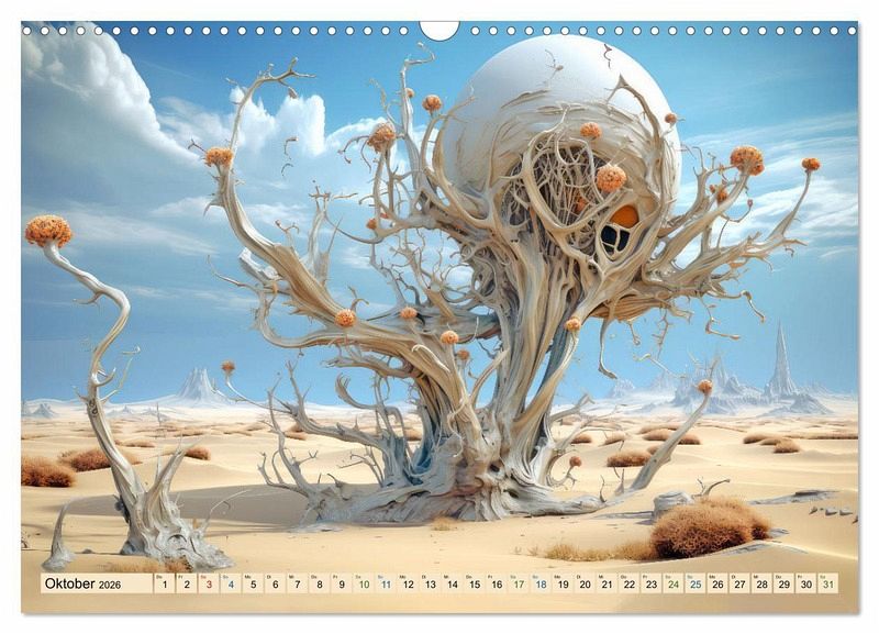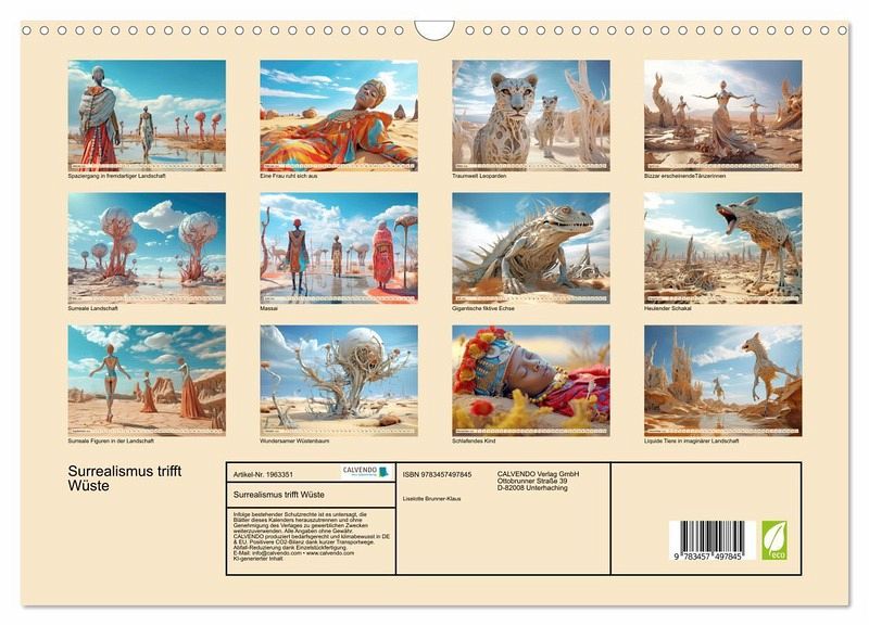 Entdecken Sie eine Welt jenseits Ihrer Vorstellungskraft. Der faszinierende Kalender mit dem Titel Surrealismus trifft Wüste lädt Sie ein zu einer Reise in surreale Landschaften und verzaubert Sie mit einmaligen Bildern, welche mit Hilfe der KI erstellt wurden.