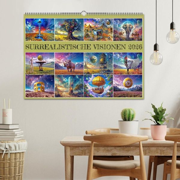 Folgen Sie uns in die faszinierende Welt des Surrealismus mit unserem exklusiven Bildkalender. Zwölf einzigartige Kunstwerke entführen Sie Monat für Monat in eine Dimension, in der Visionen real dargestellt sind. Jedes sorgfältig ausgewählte Bild lädt zur staunenden Reflexion ein. Von der "Quelle des Lebens" bis hin zur "Verlorenen Zeit" - dieser Kalender ist lässt Sie auf den Spuren Salvador Dalís und René Magrittes wandeln und ist dennoch eigenständig - eine Inspirationsquelle für jeden Tag im Jahr.