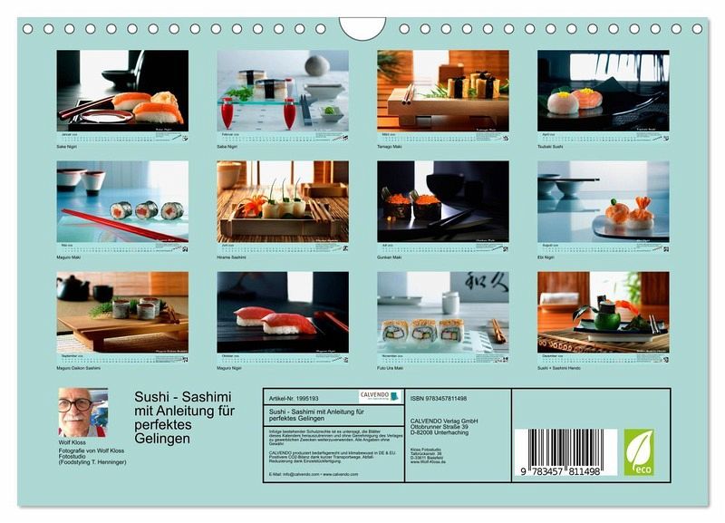 Wunderschöne Fotos von Sushi- und Sashimi-Gerichte. Mit Foodstylistin angerichtet und in ein schönes Umfeld arrangiert. Fotografisch von Wolf Kloss, sehr anspruchsvoll und aufwendig inszeniert.