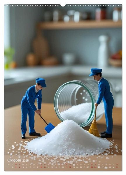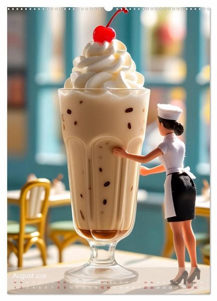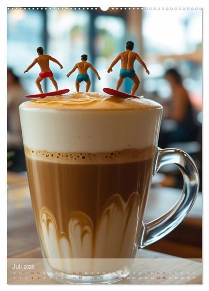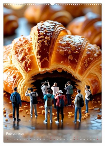 Zwischen riesigen Kuchenstücken, auslaufendem Zucker und schaumigen Heißgetränken erleben winzige Figuren fantastische Abenteuer. Was für uns alltäglich und banal erscheint, wird für sie zur spannenden Kulisse: Der Donut wird zum Berg, der Latte macchiato zum Ozean, auf dem gesurft wird, und die heiße Schokolade zur Eisfläche für wagemutige Schlittschuhläufer. Dieser fantasievoll-surreal gestaltete Kalender lädt dazu ein, den Blick für die kleinen Dinge zu schärfen - und den Alltag mit einem Augenzwinkern neu zu entdecken. Die Bilder wurden mit Unterstützung von KI kreiert.