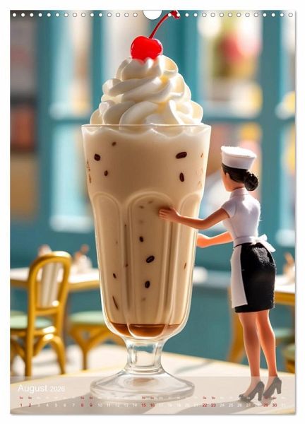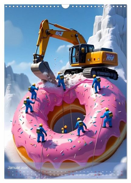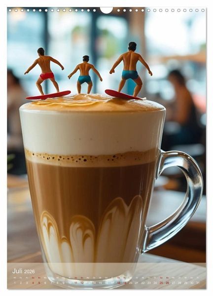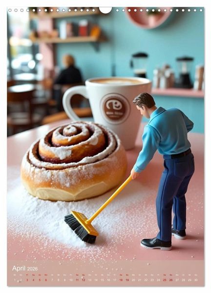 Zwischen riesigen Kuchenstücken, auslaufendem Zucker und schaumigen Heißgetränken erleben winzige Figuren fantastische Abenteuer. Was für uns alltäglich und banal erscheint, wird für sie zur spannenden Kulisse: Der Donut wird zum Berg, der Latte macchiato zum Ozean, auf dem gesurft wird, und die heiße Schokolade zur Eisfläche für wagemutige Schlittschuhläufer. Dieser fantasievoll-surreal gestaltete Kalender lädt dazu ein, den Blick für die kleinen Dinge zu schärfen - und den Alltag mit einem Augenzwinkern neu zu entdecken. Die Bilder wurden mit Unterstützung von KI kreiert.