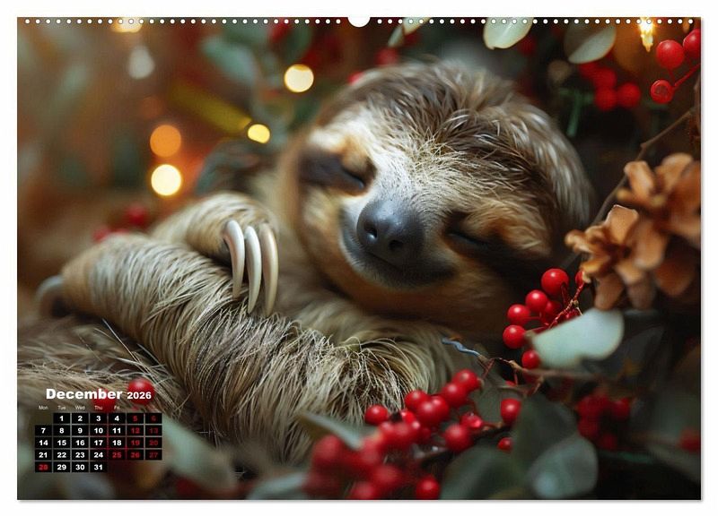 PREMIUM COLLECTION - Brilliant photo calendar with 12 beautiful motifs, high-gloss art print in museum quality.QUALITY - high-quality materials, sturdy back cover with 2 innovative insert pockets for optimum presentation on the wall.SUSTAINABLE - significant reduction in waste thanks to customised one-off production, environmentally friendly FSC-certified paper, production in Germany, climate-conscious logistics.PERFECT GIFT - calendars for friends and family, for children and adults, young and old, for Christmas, birthdays or in between.This wall calendar features vibrant, colorful scenes of adorable sloths in nature, offering a year of relaxation and calmness with each turn of the page. von Autor(in): Tina Grohs