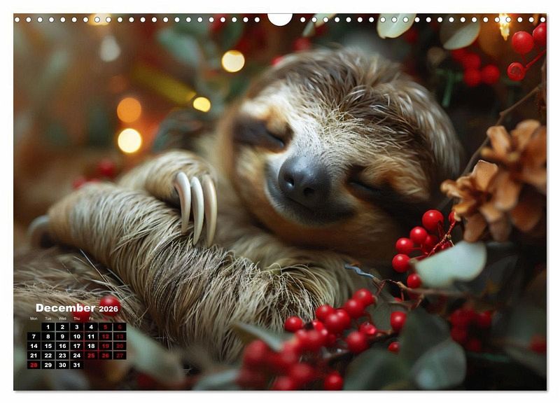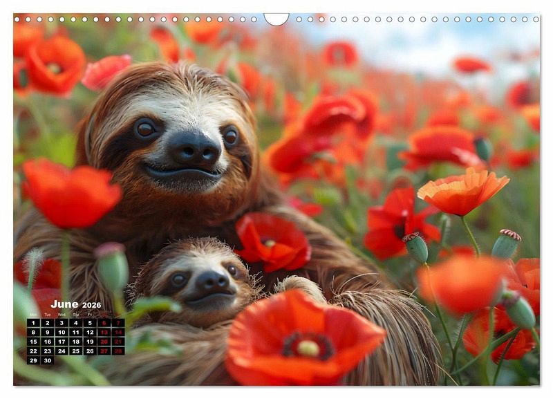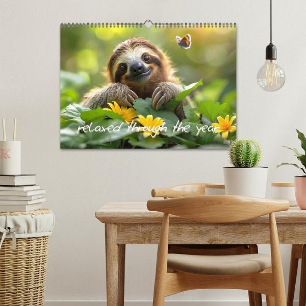 QUALITY - High-quality photo calendar with 12 beautiful images on light-resistant paper, robust spiral binding with hanger.SUSTAINABLE - Significant waste reduction due to print-on-demand production, environmentally friendly FSC-certified paper, produced in the UK, climate-conscious logistical processes.PERFECT GIFT - calendars for friends and family, for children, all ages and all occasions, from Christmas to birthdays and everything in between.LOTS OF CHOICE - Wall calendars in different sizes (DIN A4 and DIN A3), for any topic and personal taste, featuring photography, painting and illustrations.This wall calendar features vibrant, colorful scenes of adorable sloths in nature, offering a year of relaxation and calmness with each turn of the page., author: Tina Grohs