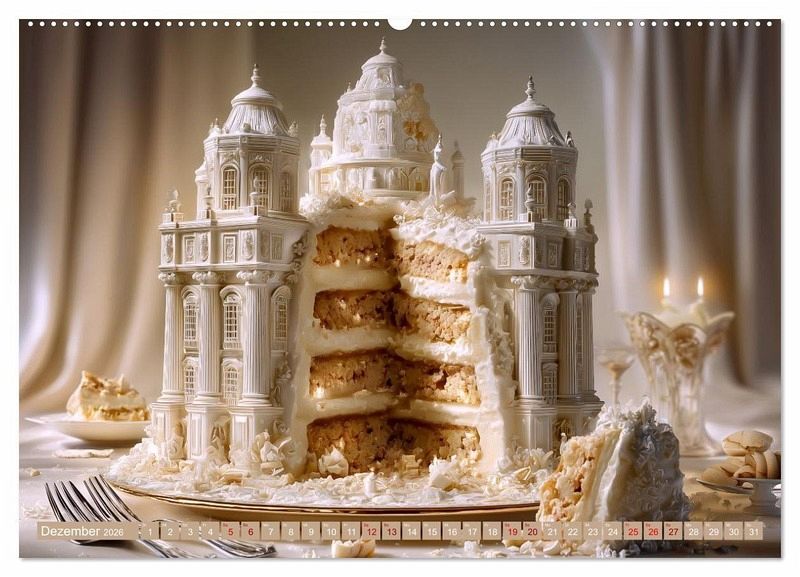 Tauchen Sie ein in die magische Welt der Tortenkunst! Jedes Bild dieses Kalenders zeigt einzigartige Tortenkreationen, die durch KI zu fantastischen Kunstwerken verwandelt wurden. Von märchenhaften Schlössern über mystische Drachen bis hin zu galaktischen Sternenbildern - diese Torten sind nicht nur kulinarische Meisterleistungen, sondern auch visuelle Träume. Die Kombination aus traditioneller Konditorkunst und moderner KI-Technologie schafft eine einzigartige Ästhetik, die jeden Monat aufs Neue begeistert. Ideal für Naschkatzen, Kunstliebhaber und alle, die sich an der Schönheit des Außergewöhnlichen erfreuen. Hinweis: Keine Rezepte enthalten.