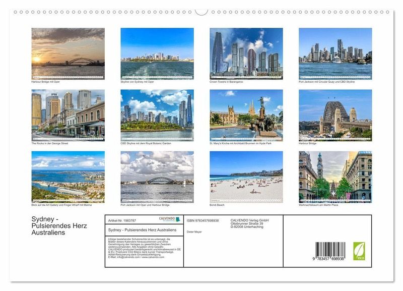 Der Kalender über Sydney bietet beeindruckende Ansichten der berühmten australischen Millionenstadt. Atemberaubende Motive wie dem Opernhaus, der Harbour Bridge, Darling Harbour, Bondi Beach und dem lebhaften Central Business District zeigen die Energie und den Charme dieser einzigartigen Stadt.