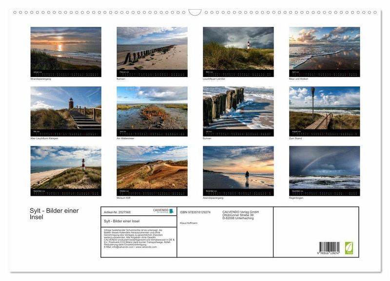 QUALITÄT - Hochwertiger Fotokalender mit 12 wunderschönen Motiven auf lichtbeständigem Bilderdruckpapier, robuste Spiralbindung mit Aufhängebügel.NACHHALTIG - deutliche Abfallreduzierung durch bedarfsgerechte Einzelstückfertigung, umweltfreundliches FSC-zertifiziertes Papier, Produktion in Deutschland, klimabewusste Logistik.PERFEKTES GESCHENK - Kalender für Freunde und Familie, für Kinder und Erwachsene, jung und alt, zu Weihnachten, Geburtstag oder zwischendurch.VIELFALT - Bildkalender in verschiedenen Formaten, z.B. DIN A5, DIN A4, DIN A3 sowie DIN A2. Ob Naturmotiv, Gemälde oder Fotos, ideal für ein persönliches Wohlfühlambiente.Sylt, die faszinierende deutsche Insel in der Nordsee. von Autor(in): Klaus Hoffmann