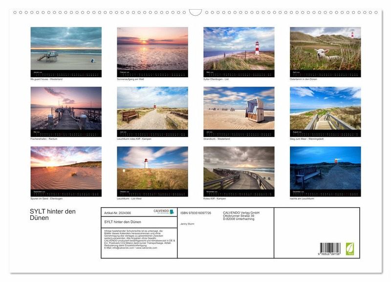 QUALITÄT - Hochwertiger Fotokalender mit 12 wunderschönen Motiven auf lichtbeständigem Bilderdruckpapier, robuste Spiralbindung mit Aufhängebügel.NACHHALTIG - deutliche Abfallreduzierung durch bedarfsgerechte Einzelstückfertigung, umweltfreundliches FSC-zertifiziertes Papier, Produktion in Deutschland, klimabewusste Logistik.PERFEKTES GESCHENK - Kalender für Freunde und Familie, für Kinder und Erwachsene, jung und alt, zu Weihnachten, Geburtstag oder zwischendurch.VIELFALT - Bildkalender in verschiedenen Formaten, z.B. DIN A5, DIN A4, DIN A3 sowie DIN A2. Ob Naturmotiv, Gemälde oder Fotos, ideal für ein persönliches Wohlfühlambiente.Sehnsuchtsvolle Momentaufnahmen der Insel Sylt von Autor(in): Jenny Sturm