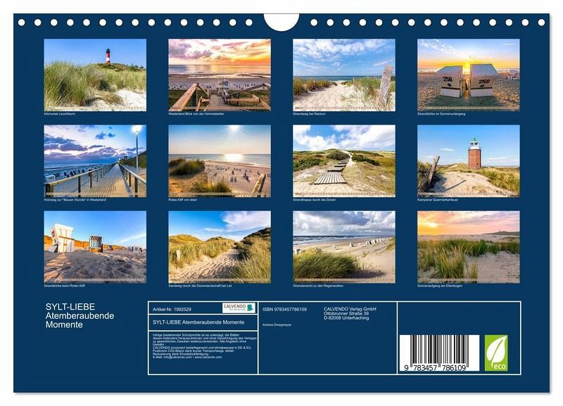 QUALITÄT - Hochwertiger Fotokalender mit 12 wunderschönen Motiven auf lichtbeständigem Bilderdruckpapier, robuste Spiralbindung mit Aufhängebügel.NACHHALTIG - deutliche Abfallreduzierung durch bedarfsgerechte Einzelstückfertigung, umweltfreundliches FSC-zertifiziertes Papier, Produktion in Deutschland, klimabewusste Logistik.PERFEKTES GESCHENK - Kalender für Freunde und Familie, für Kinder und Erwachsene, jung und alt, zu Weihnachten, Geburtstag oder zwischendurch.VIELFALT - Bildkalender in verschiedenen Formaten, z.B. DIN A5, DIN A4, DIN A3 sowie DIN A2. Ob Naturmotiv, Gemälde oder Fotos, ideal für ein persönliches Wohlfühlambiente.Die schönsten Inselblicke im Licht der Sonne von Autor(in): Andrea Dreegmeyer
