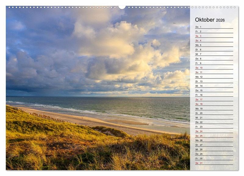 Der Kalender "Sylt - Magie der Abendstunden" ist mehr als nur ein Kalender - er ist ein visuelles Meisterwerk, das die atemberaubende Schönheit von Sylt in den Abendstunden in eindrucksvollen Panoramen präsentiert. Tauchen Sie ein in eine magische Meerlandschaft, die die einzigartige Stimmung und Atmosphäre der nordfriesischen Insel auf unvergleichliche Weise einfängt. Die Vielfalt der prächtigen Küstenlandschaft Sylts wird Sie verzaubern, und jedes Bild wurde sorgfältig ausgewählt, um Ihnen ein Stück der Insel in Ihr Zuhause zu bringen. Dieser Kalender ist nicht nur ein Blickfang, sondern auch eine regelmäßige Quelle der Inspiration und Erinnerung an die magische Anziehungskraft von Sylt, insbesondere in den zauberhaften Abendstunden.