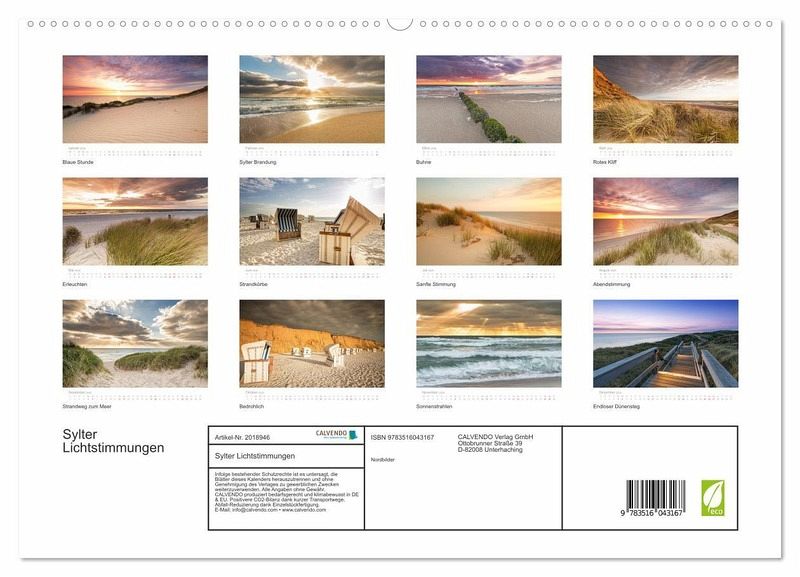 PREMIUM-LINIE - Brillanter Fotokalender mit 12 wunderschönen Motiven, Kunstdruck in Hochglanz in Museumsqualität.QUALITÄT - edle Materialien, stabile Rückwand mit 2 innovativen Einstecktaschen für eine optimale Präsentation an der Wand.NACHHALTIG - deutliche Abfallreduzierung durch bedarfsgerechte Einzelstückfertigung, umweltfreundliches FSC-zertifiziertes Papier, Produktion in Deutschland, klimabewusste Logistik.PERFEKTES GESCHENK - Kalender für Freunde und Familie, für Kinder und Erwachsene, jung und alt, zu Weihnachten, Geburtstag oder zwischendurch.Lichtstimmungen auf Sylt von Autor(in): Nordbilder Fotografie aus Leidenschaft
