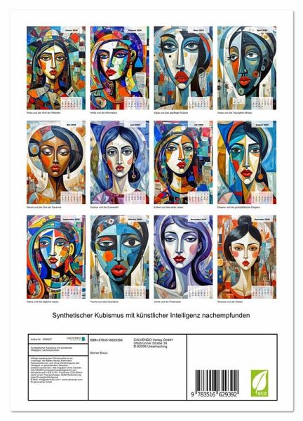 Unser Kalender präsentiert zwölf bemerkenswerte Frauenporträts, die im Stil des Synthetischen Kubismus geschaffen wurden. Jedes Bild ist eine Hommage an die revolutionäre Kunstrichtung, die von Picasso und Braque geprägt wurde, und interpretiert sie neu durch mit den Mitteln einer modernen KI. Der Synthetische Kubismus zeichnet sich unter anderem aus durch die Reduktion von Formen auf geometrische Grundformen. Unsere KI hat diese Prinzipien adaptiert und verleiht jedem Porträt seine eigene Ästhetik, die sowohl bekannt als auch neuartig wirkt. Sehen Sie, wie revolutionäre Kunst auf innovative Technologie trifft. Ein Zitat von Paul Cézanne fasst die Essenz dieses Kalenders treffend zusammen: "Alles in der Natur modelliert sich aus Kugel, Kegel und Zylinder."