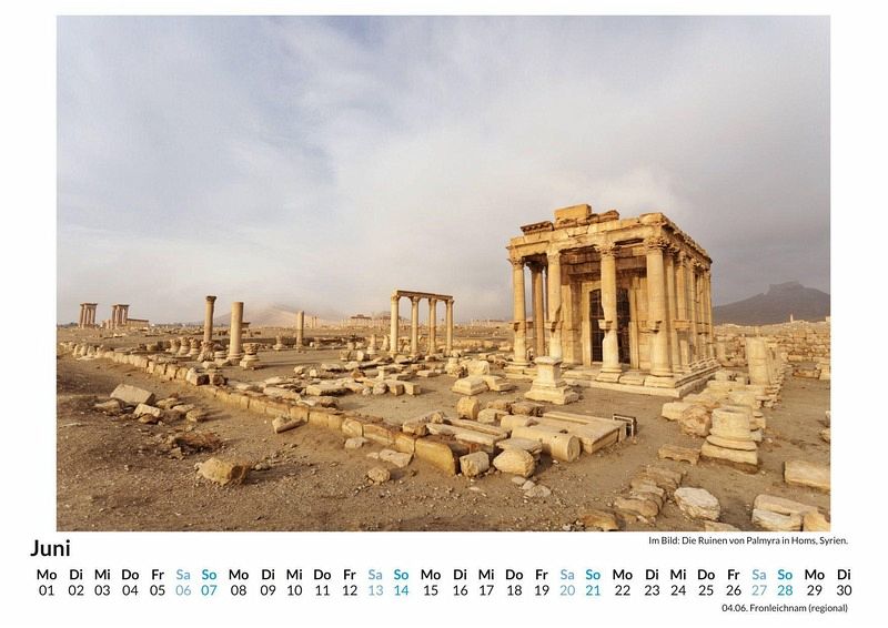 Entdecken Sie die faszinierende Schönheit Syriens mit unserem exklusiven Wandkalender! Lassen Sie sich Monat für Monat von 12 atemberaubenden Motiven verzaubern, die die reiche Kultur, beeindruckende Landschaften und historischen Schätze dieses einzigartigen Landes einfangen. Gedruckt auf hochwertigem, lichtbeständigem Bilderdruckpapier, garantieren die brillanten Farben langanhaltende Freude. Nachhaltigkeit liegt uns am Herzen: Unsere Kalender werden in Deutschland auf FSC-zertifiziertem Papier produziert. Holen Sie sich ein Stück Syrien in Ihr Zuhause und lassen Sie sich jeden Tag aufs Neue inspirieren. Perfekt als Geschenk oder für die eigene Wand! Hochwertig Erleben Sie ein Jahr voller Eleganz mit unserem Premium-Fotokalender. Jedes der 12 Motive ist auf hochwertigem, lichtbeständigem Bilderdruckpapier gedruckt, um die Lebendigkeit jedes Bildes zu bewahren. Die robuste Spiralbindung gewährleistet Langlebigkeit und einfache Handhabung. Nachhaltig Unser Engagement für die Umwelt spiegelt sich in jedem Exemplar wider. Durch die Produktion auf Abruf reduzieren wir signifikant unseren Abfall. Wir verwenden ausschließlich umweltfreundliches, FSC-zertifiziertes Papier. Stolz gefertigt in Deutschland, achten wir bei unserer Logistik auf Klimaschutz, um unseren ökologischen Fußabdruck zu minimieren. Das ideale Geschenk Dieser Kalender ist das perfekte Präsent für jeden Anlass - ob Weihnachten, Geburtstage oder einfach als liebevolle Aufmerksamkeit zwischendurch. Geeignet für Freunde, Familie, Kinder und Erwachsene gleichermaßen, bereichert er jedes Zuhause mit seiner Vielfalt und Schönheit, unabhängig vom Alter der Beschenkten.
