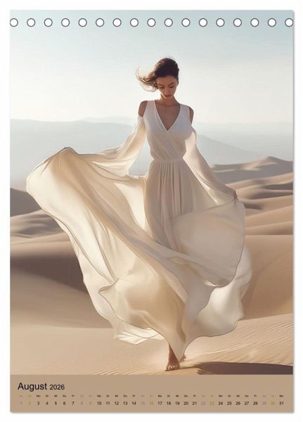 Geben Sie Ihrem Zuhause mit unserem Kalender "Tänzerinnen in der Wüste" einen ganz besonderen Touch! Erleben Sie die atemberaubende Schönheit von Tänzerinnen in traumhafter Kleidung, die mit ihrer Silhouette und Leidenschaft faszinieren. Jeden Monat zeigen wir Ihnen kunstvolle und anmutige Bilder, die von Licht und Leben erfüllt sind. Die Tänzerinnen in der Wüste verkörpern die Freude am Leben und feiern das Hier und Jetzt. Mit ihren gewaltigen Tüchern zeichnen sie wunderschöne Schwungkurven in die Luft und entführen uns in eine andere Welt. Freuen Sie sich auf 12 Monate voller Lebensfreude und Grazie und lassen Sie sich inspirieren von den Bildern, die mit Hilfe der KI erstellt wurden! Egal wo Sie den Kalender aufhängen oder stellen, er wird Ihnen stets einen Glanzpunkt im Raum bescheren und für ein Lächeln auf Ihrem Gesicht sorgen. Ein tolles Geschenk für jeden, der das Leben genießt oder selbst ein Tänzerherz hat. Erleben sie die Tänzerinnen in der Wüste!