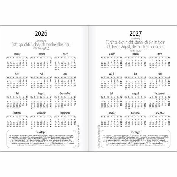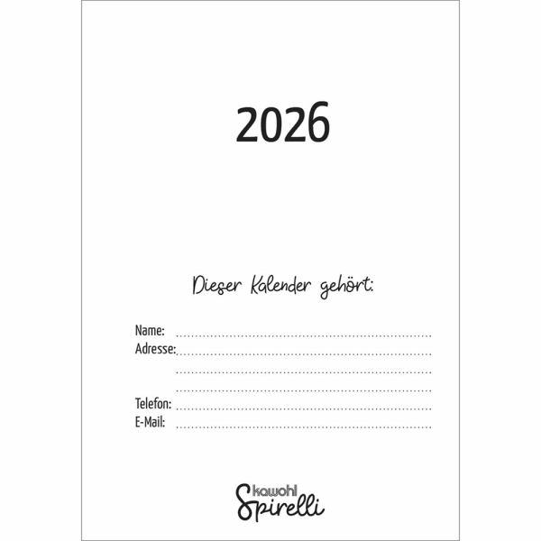 Spirelli-Kalender mit Top-Motiven und christlichen TextenSpirelli-Taschenkalender - der Name ist Programm, denn die praktische Wire-O-Bindung lässt äußerste Flexibilität zu. Zusätzlich zum übersichtlichen Kalendarium, das pro Doppelseite eine Woche zeigt, enthält dieser kompakte Kalender zwölf herausnehmbare Karten mit brillanten Kawohl-Motiven, die nach Belieben umsortiert werden können und als Notizseite sowie Postkarte dienlich sind.Schön, praktisch und mit guten Impulsen.Spirelli-Kalender (Taschenkalender):- mit neuen Top-Motiven- mit christlichen Texten und Bibelversen- 128 Seiten - je 2 Seiten pro Woche- 12 Postkarten zum Entnehmen & Verschieben- mit Sammelfach, Lesebändchen und Gummiverschluss- Spiralbindung