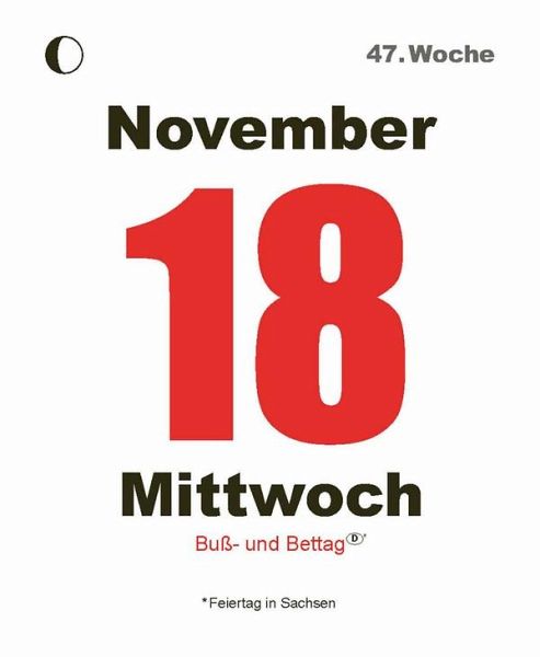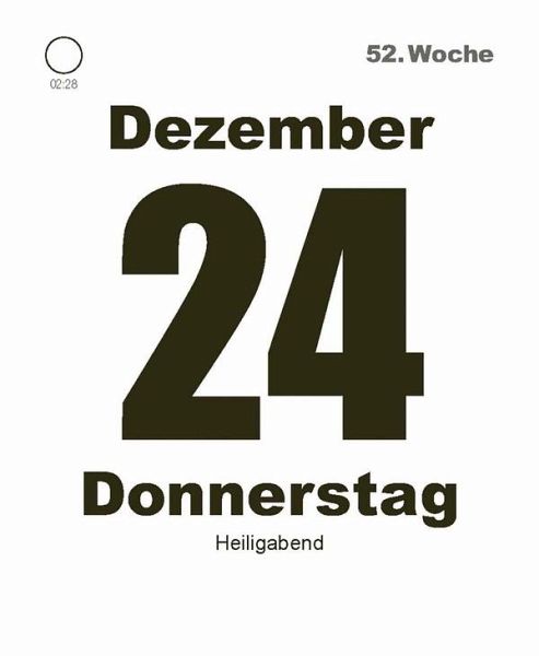Der aufstellbare Tages-Abreisskalender im großen Format mit 12 x 16 cm hat große und gut lesbare Zahlen, welche an den Sonn- und Feiertagen jeweils rot eingefärbt sind.