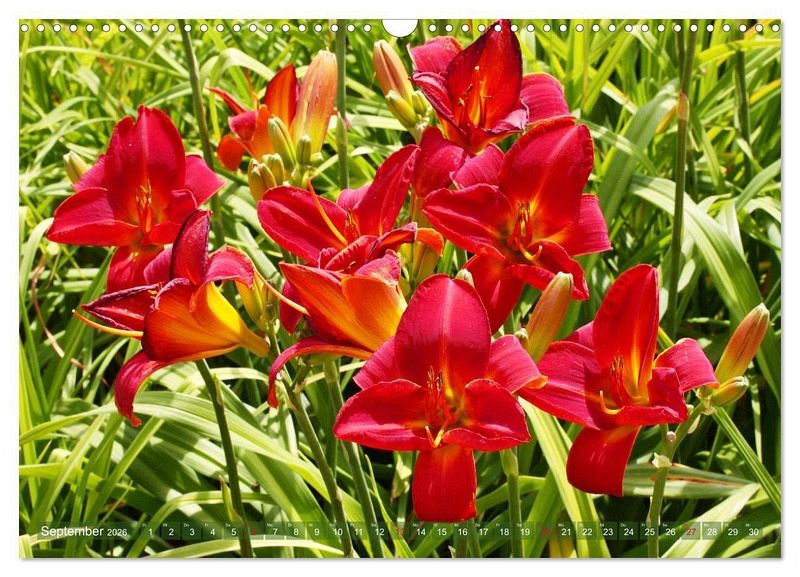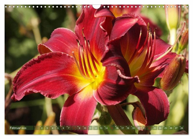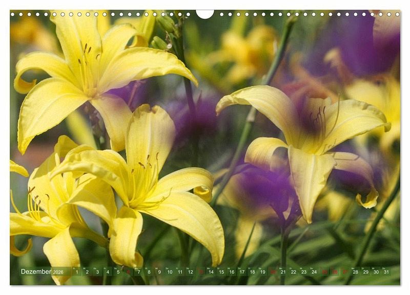 Die Taglilie öffnet jede Blüte nur für einen Tag - daher ihr Name. Die Staude bildet aber ab Mai so viele Knospen, dass ihre Blütezeit fast den ganzen Sommer anhält. Taglilien sind langlebig, pflegeleicht und anpassungsfähig. Sie lieben die Sonne, können aber auch im Halbschatten gedeihen - dann bilden sie jedoch weniger Knospen. Der Kalender präsentiert Ihnen viele Facetten der beliebten Gartenstaude in abwechslungsreichen, interessanten Fotografien.