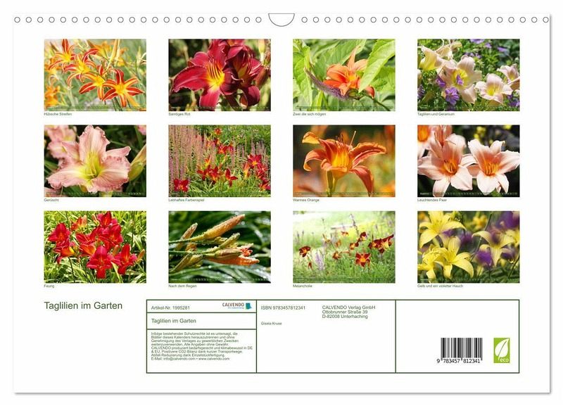 QUALITÄT - Hochwertiger Fotokalender mit 12 wunderschönen Motiven auf lichtbeständigem Bilderdruckpapier, robuste Spiralbindung mit Aufhängebügel.NACHHALTIG - deutliche Abfallreduzierung durch bedarfsgerechte Einzelstückfertigung, umweltfreundliches FSC-zertifiziertes Papier, Produktion in Deutschland, klimabewusste Logistik.PERFEKTES GESCHENK - Kalender für Freunde und Familie, für Kinder und Erwachsene, jung und alt, zu Weihnachten, Geburtstag oder zwischendurch.VIELFALT - Bildkalender in verschiedenen Formaten, z.B. DIN A5, DIN A4, DIN A3 sowie DIN A2. Ob Naturmotiv, Gemälde oder Fotos, ideal für ein persönliches Wohlfühlambiente.Ein Potpourri schöner Hemerocallis von Autor(in): Gisela Kruse
